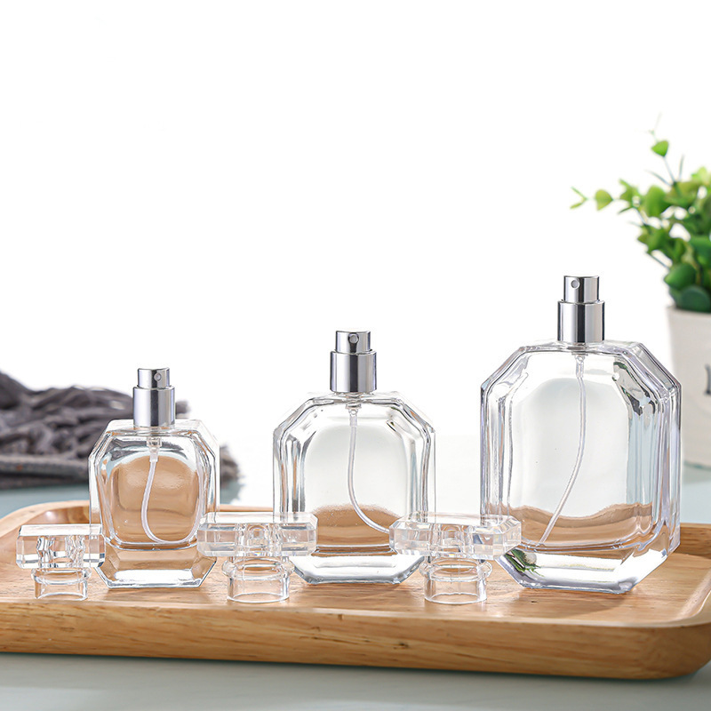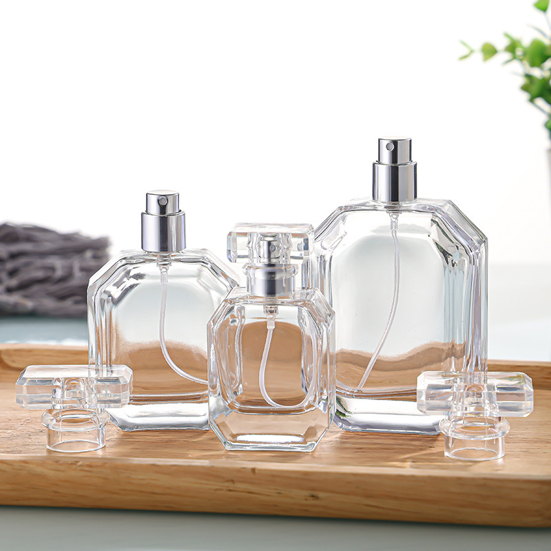 Luxury perfume glass bottles in custom shapes, colors, and capacities. Frosting, engraving, spray coating, and full 3-piece sets. OEM/ODM available with small MOQ.