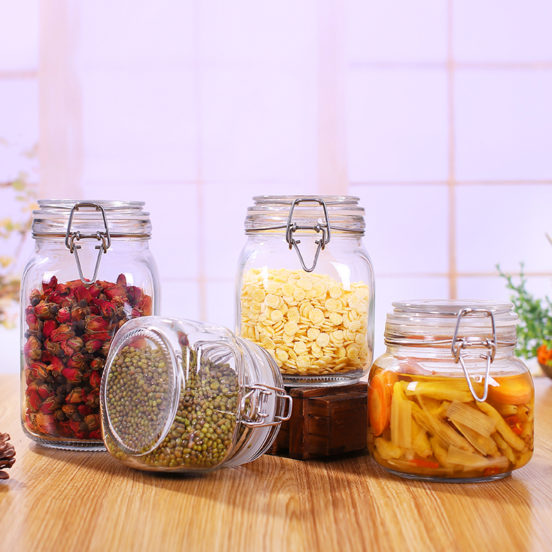 Kitchen grain airtight glass food storage jars, glass bottles, honey bottles